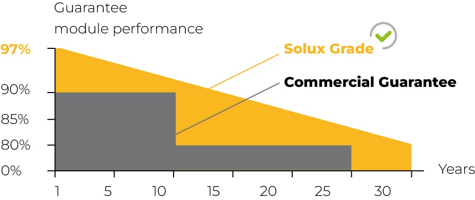 For the sake of performance and reliability Solux uses monocrystalline photovoltaic panels high performance.